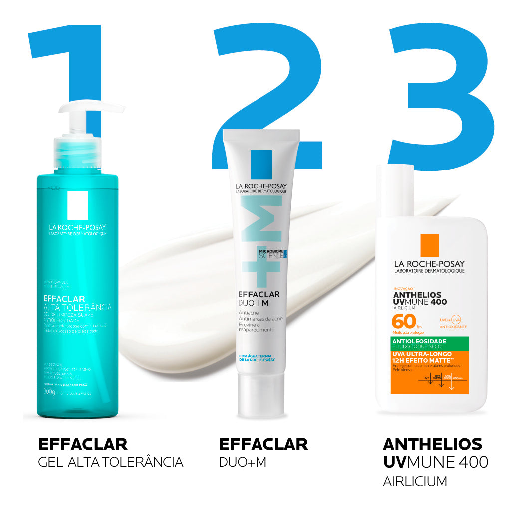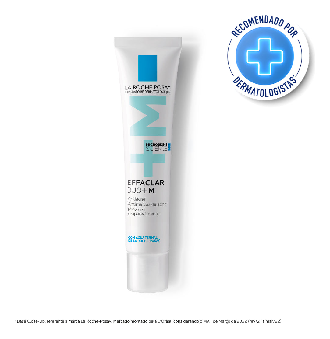 Tratamento antiacne para o rosto. La Roche-Posay Effaclar Duo+M equilibra o excesso de oleosidade, enquanto combate cravos e espinhas.