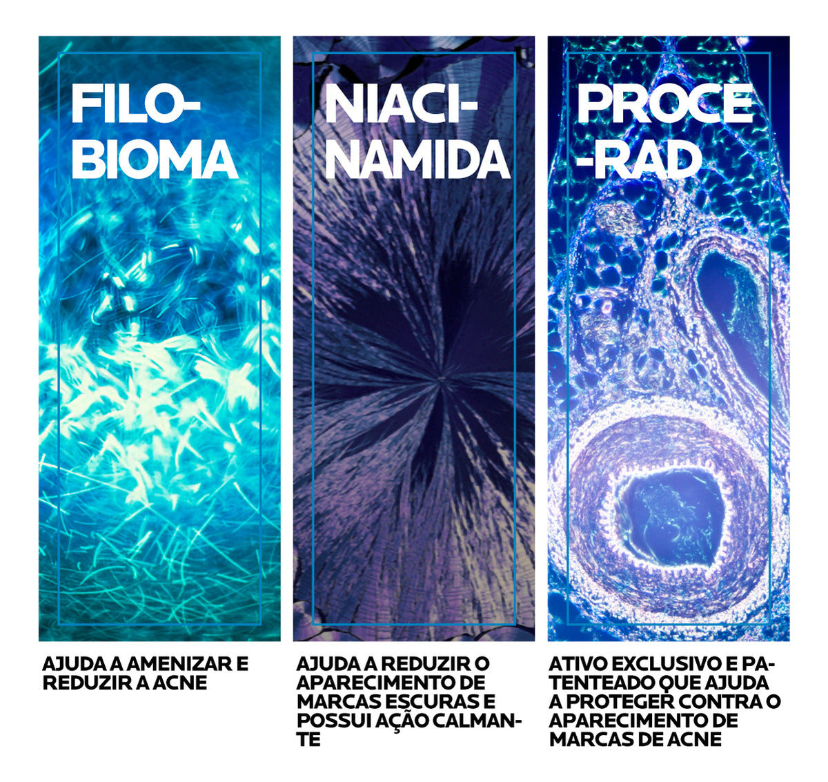 Procerad™: ceramida antimarcas exclusiva e patenteada, que ajuda a proteger a pele contra o aparecimento de marcas de acne.